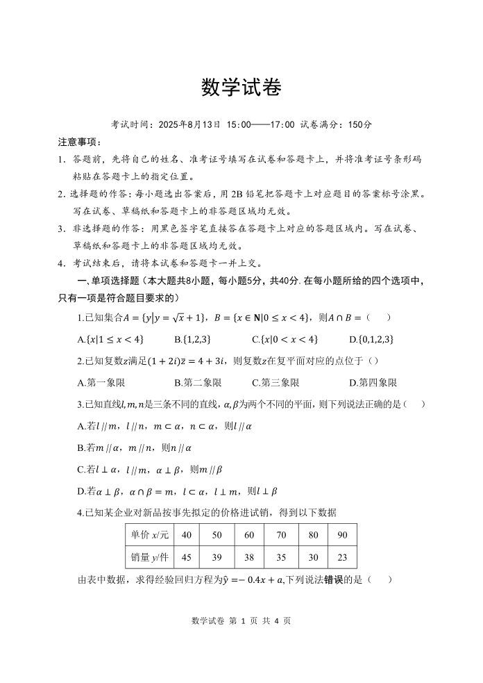 湖北省腾云联盟2025-2026学年度上学期高三年级8月联考 数学.pdf