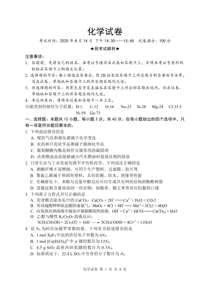 湖北省腾云联盟2025-2026学年度上学期高三年级8月联考 化学.pdf