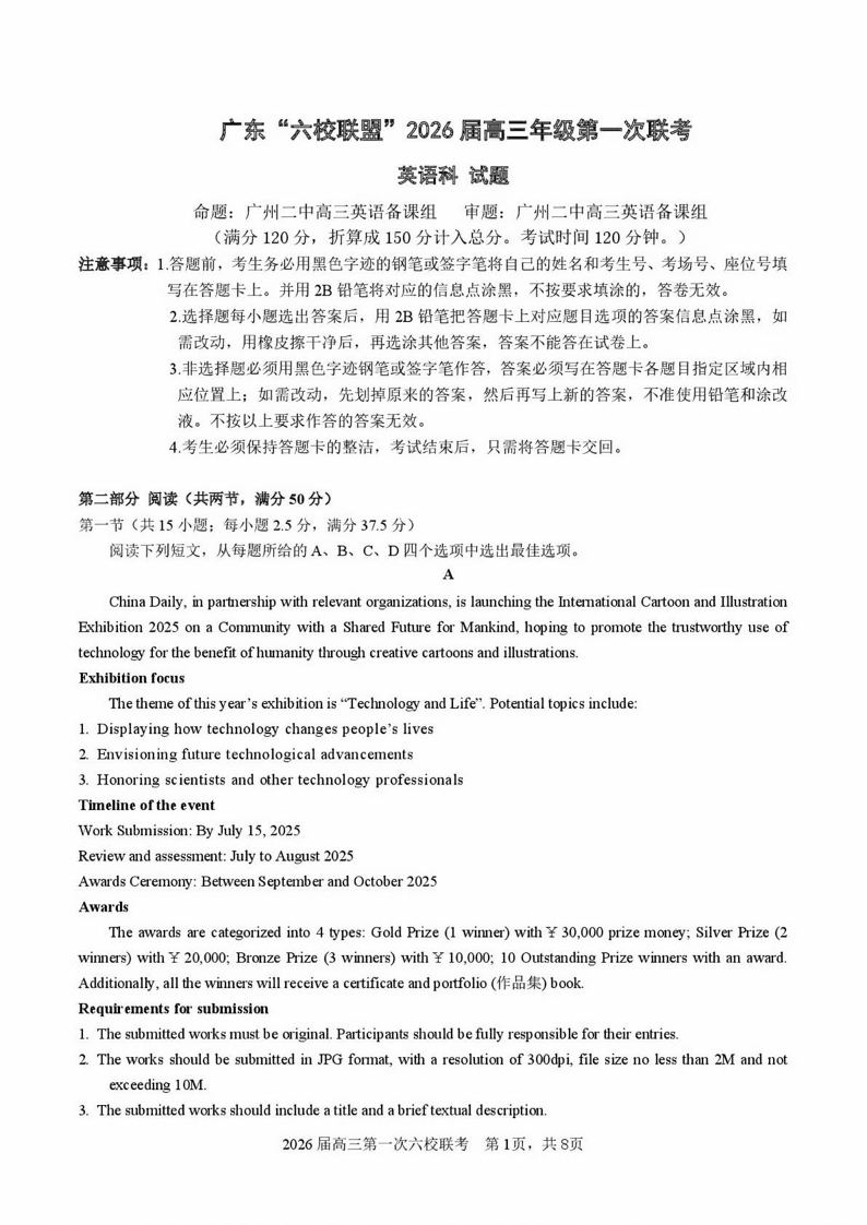 广东省“六校联盟”2026届高三年级第一次联考 英语.pdf