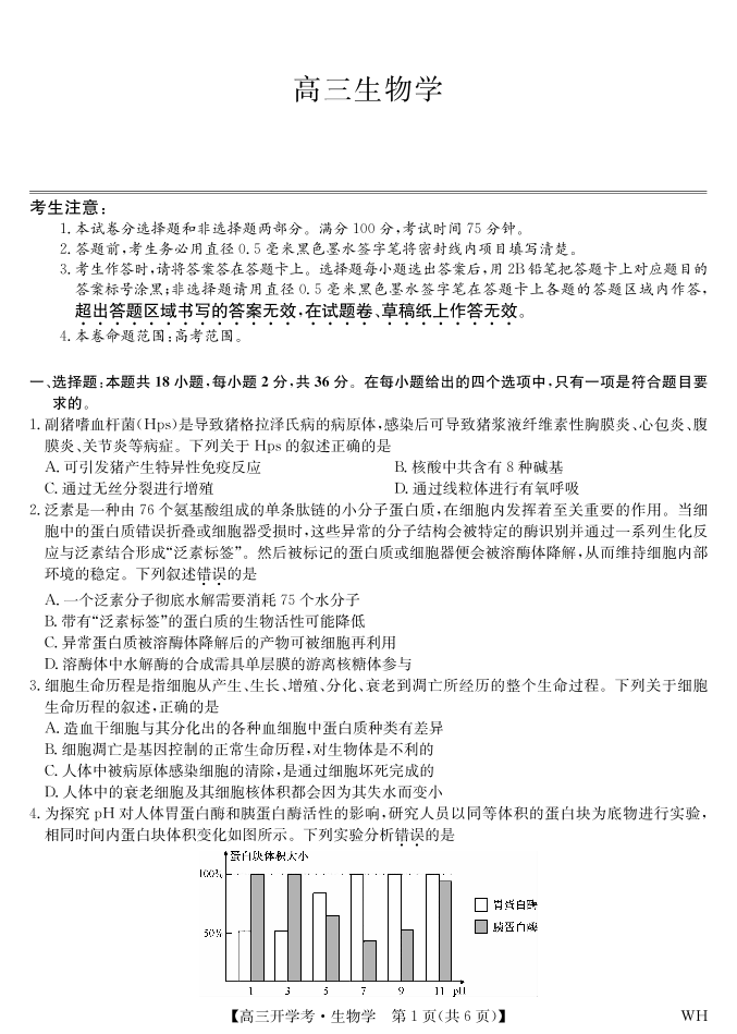 生物-湖北武汉高三8月开学考.pdf