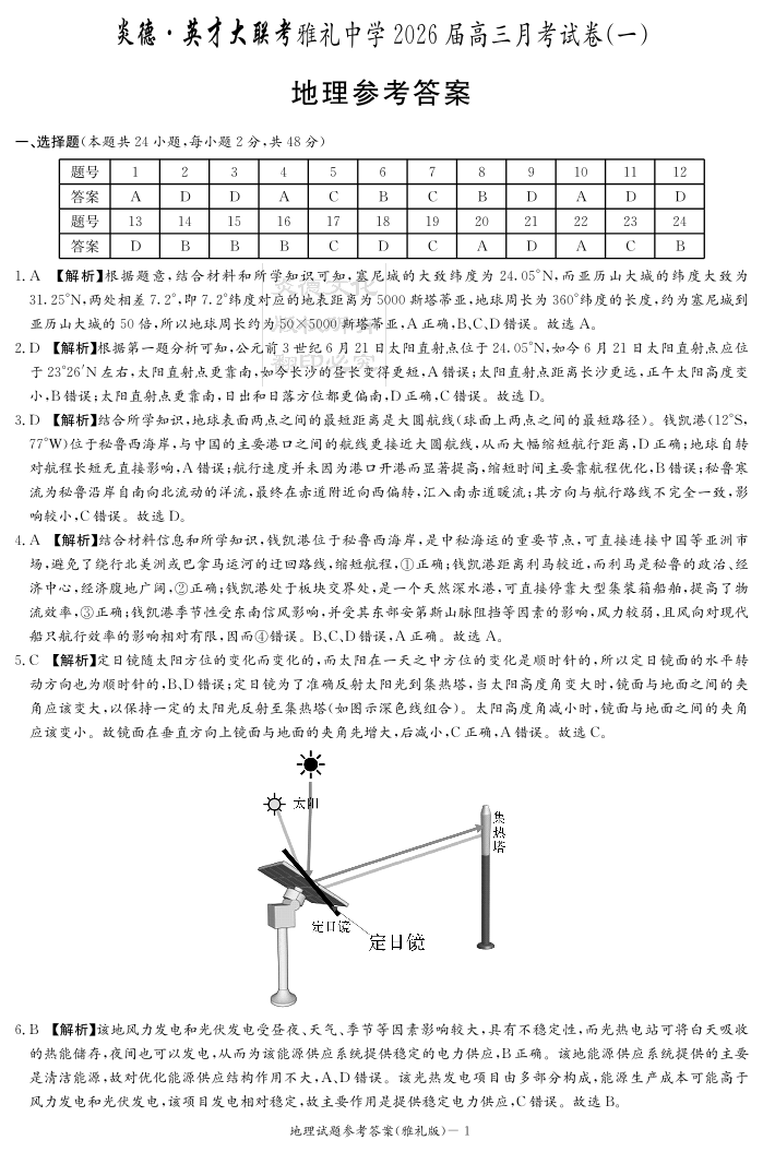 炎德·英才大联考雅礼中学2026届高三月考试卷(一)地理答案.pdf