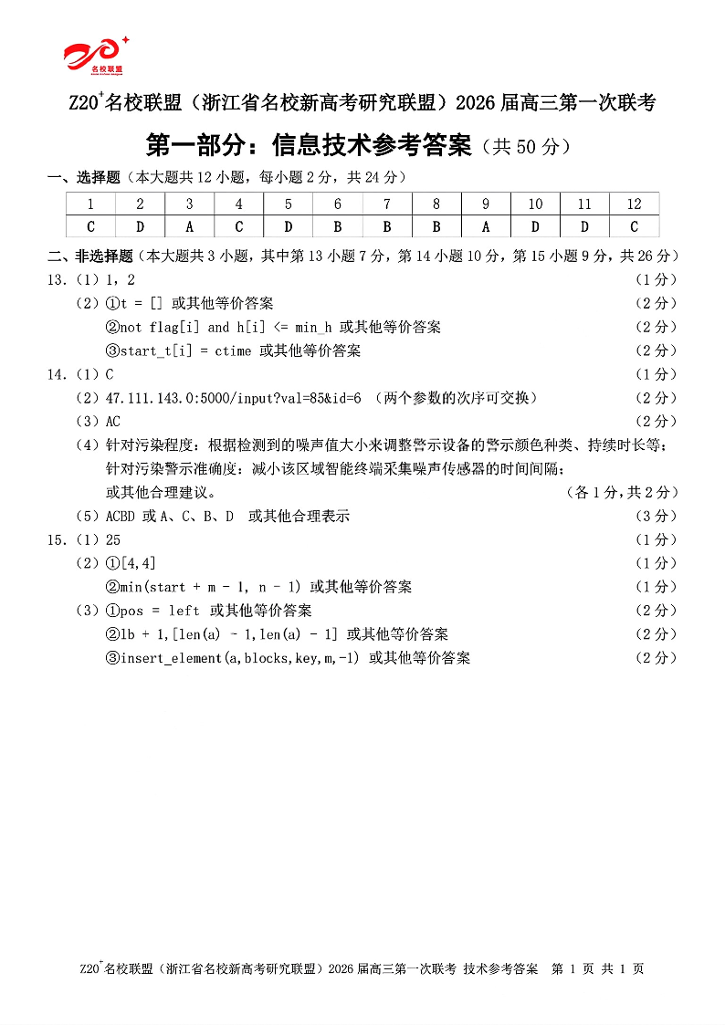 Z20+名校联盟(浙江省名校新高考研究联盟)2026届高三第一次联考 技术答案.pdf