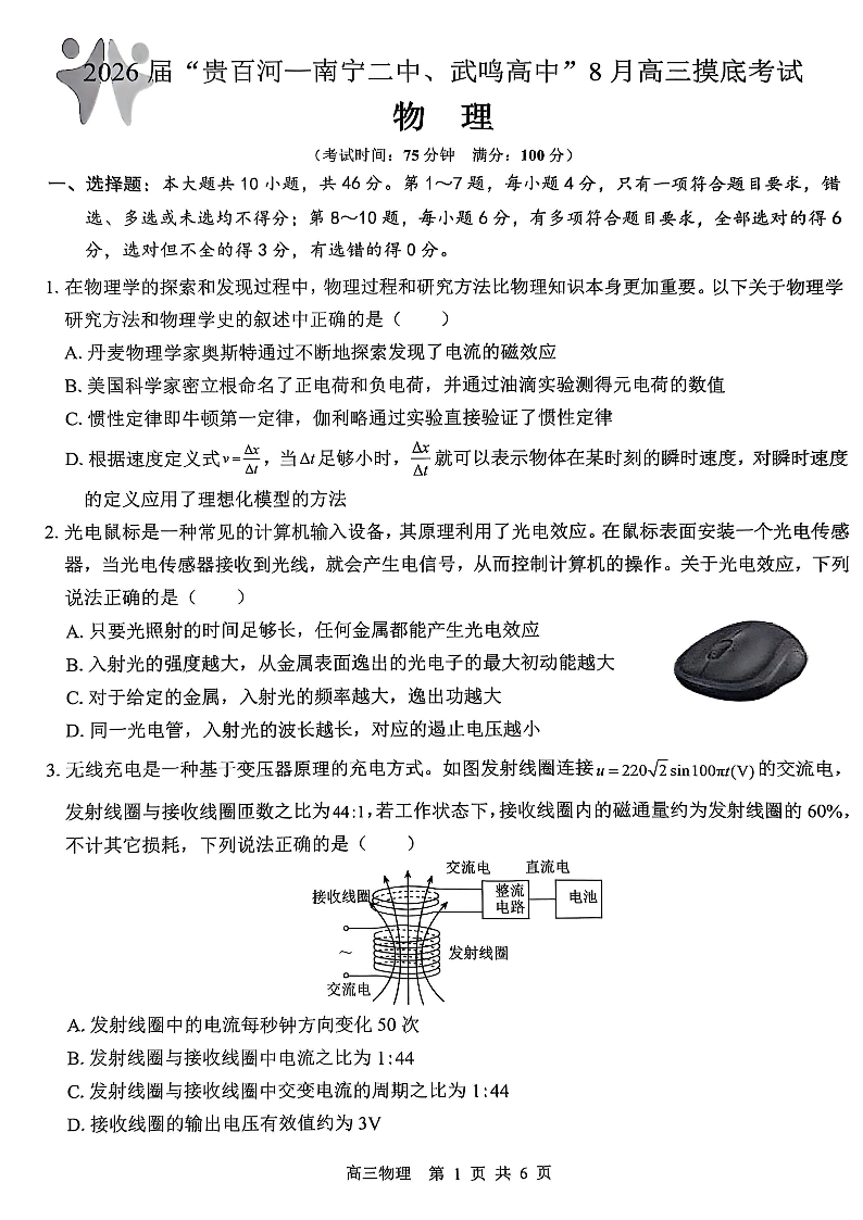 2026届“贵百河一南宁二中、武鸣高中”8月高三摸底考试 物理.pdf