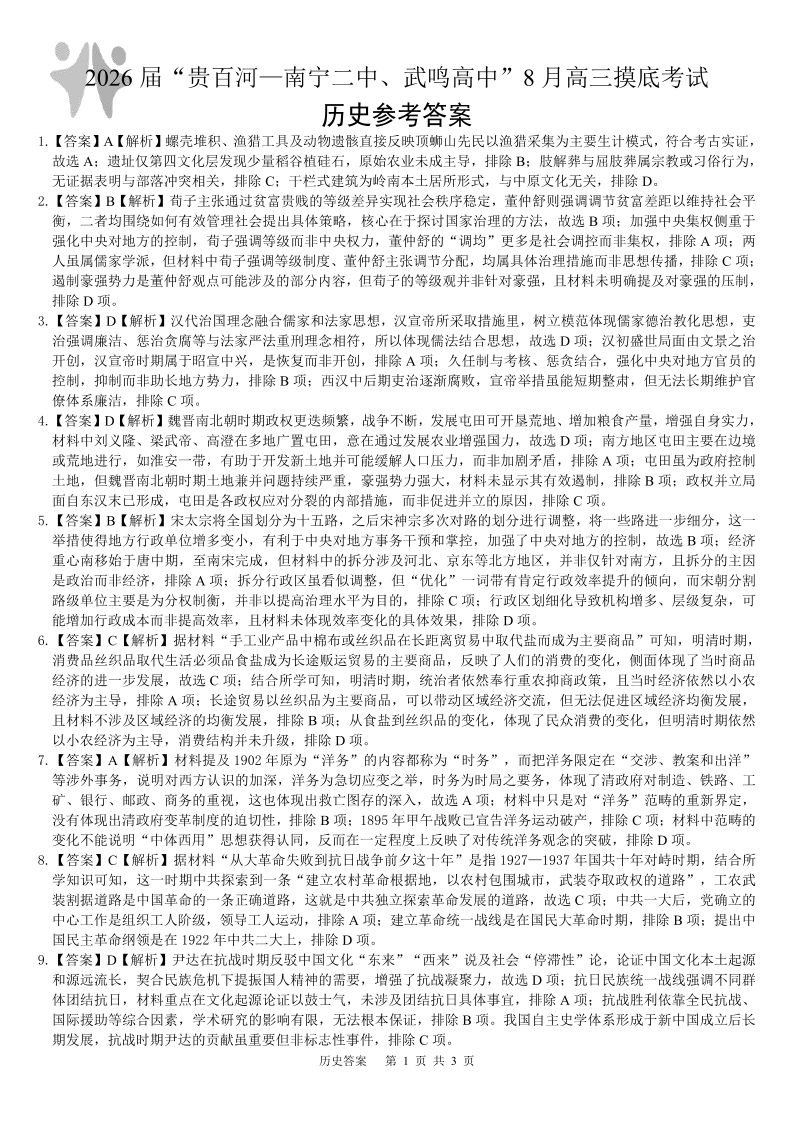 2026届“贵百河一南宁二中、武鸣高中”8月高三摸底考试 历史答案.pdf