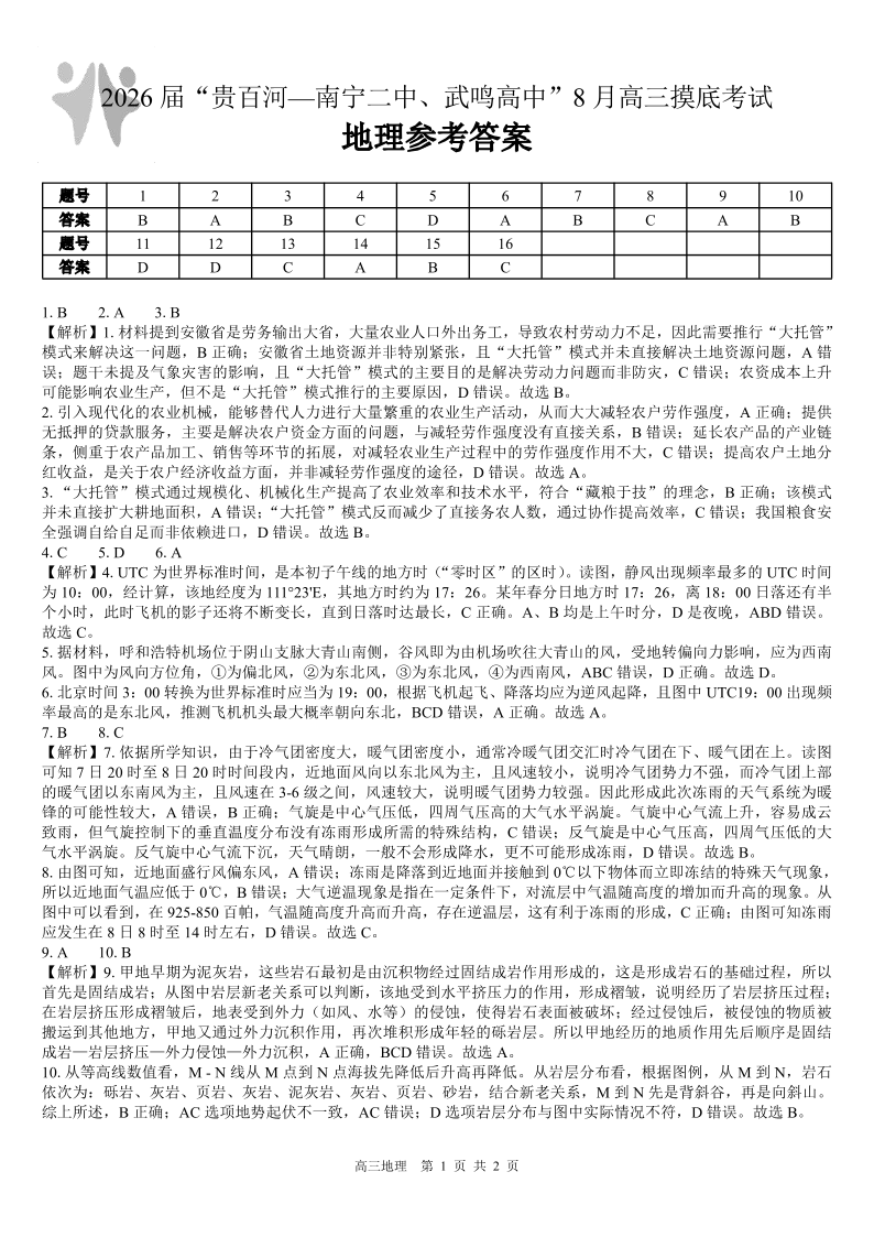 2026届“贵百河一南宁二中、武鸣高中”8月高三摸底考试 地理答案.pdf