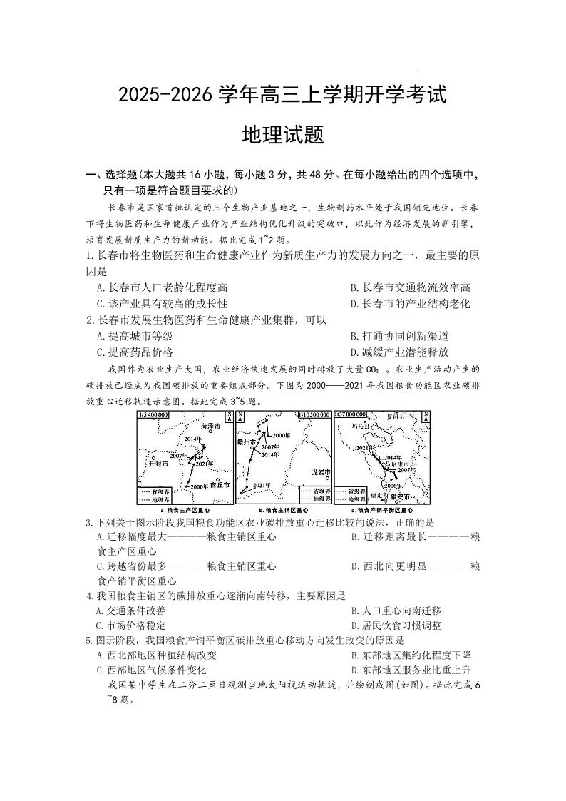 河北省衡水市冀州中学2025-2026学年高三上学期开学摸底考试 地理(含答案).pdf