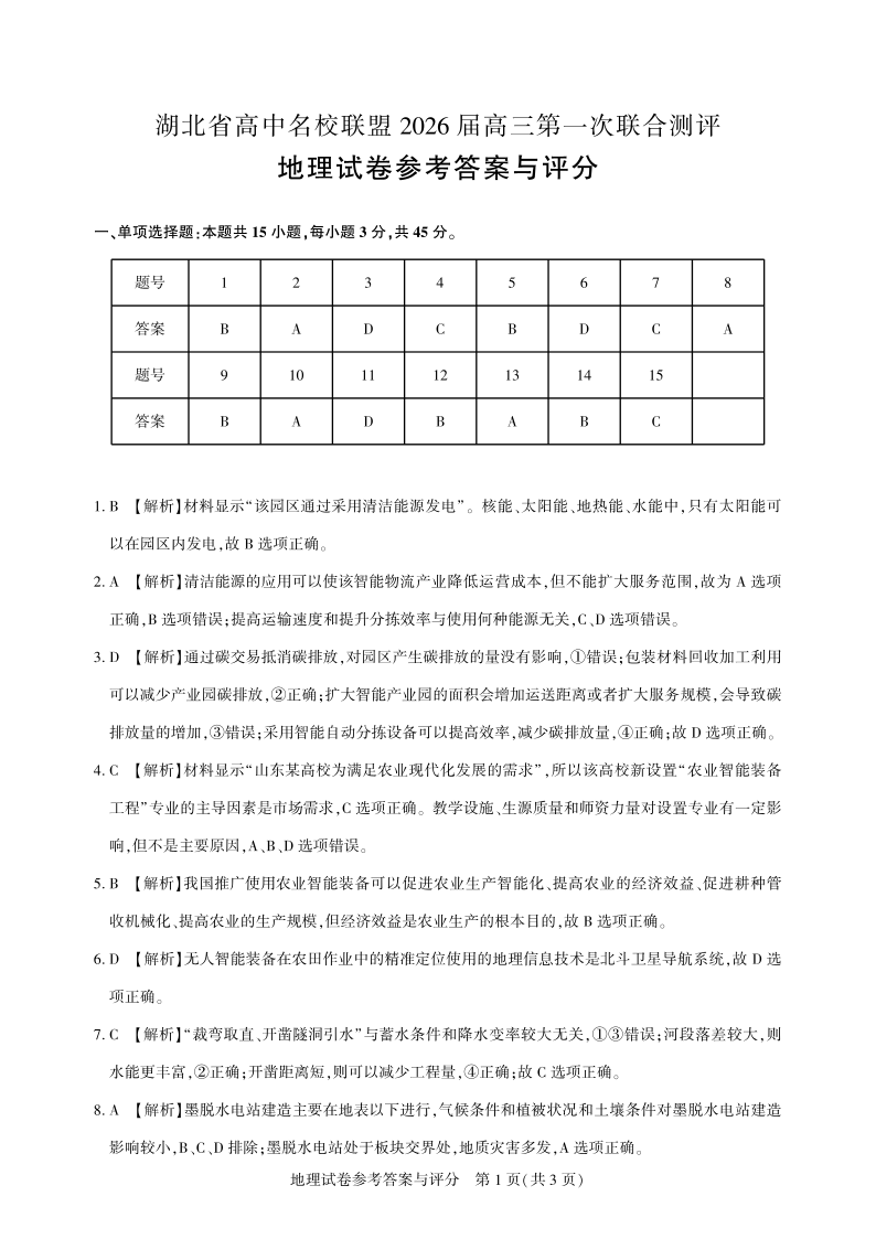 高三地理-2026届第一次测评-答案与详解.pdf