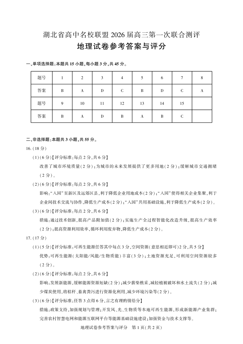 高三地理-2026届第一次测评-答案.pdf