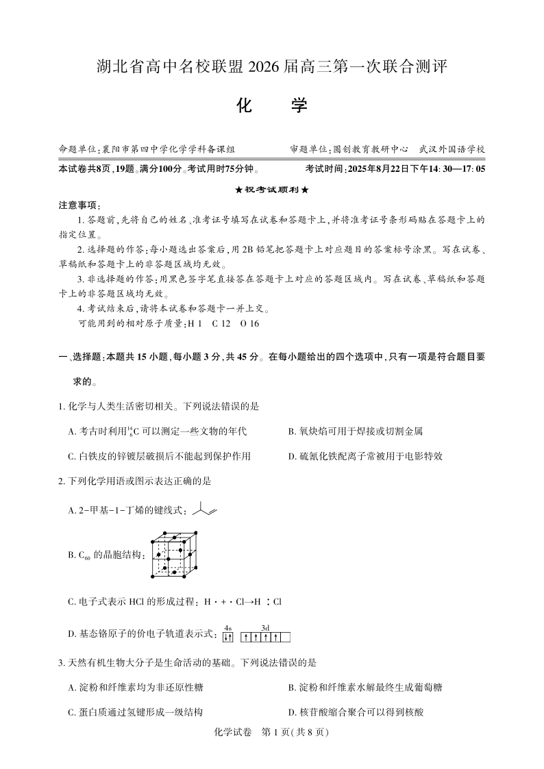 高三化学-2026届第一次测评-试卷.pdf