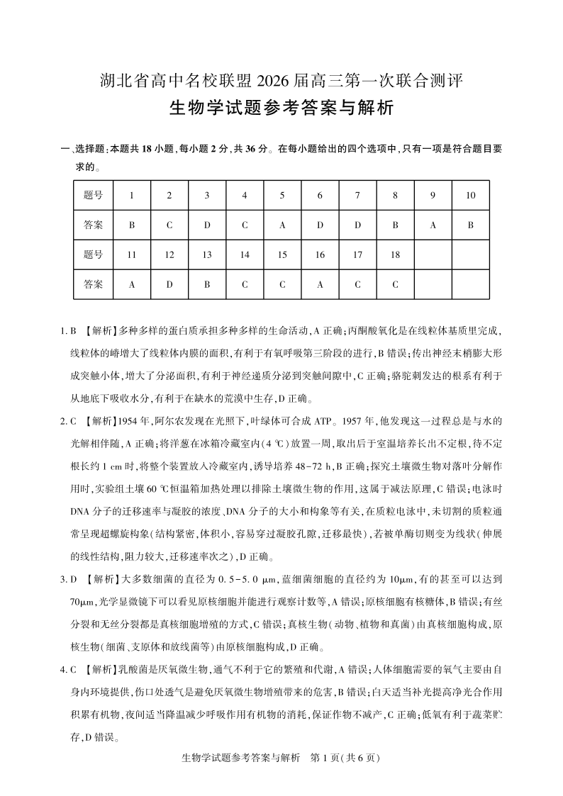 高三生物-2026届第一次测评-答案与解析.pdf