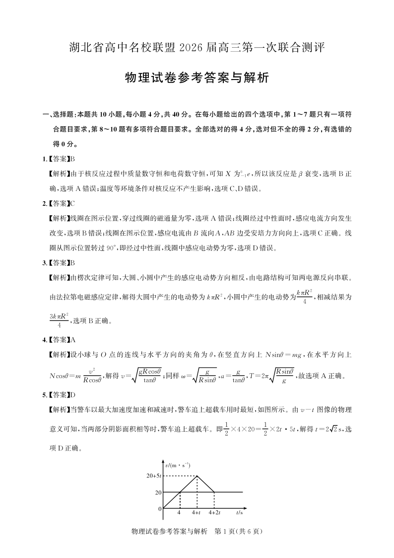 高三物理-2026届第一次测评-答案与解析.pdf