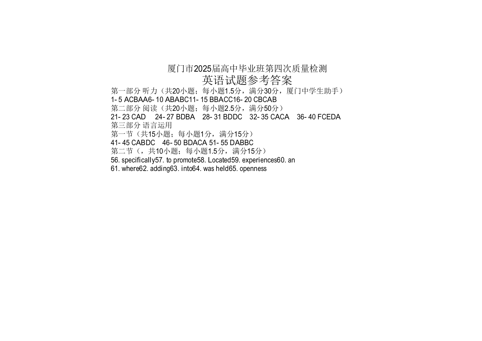 福建省厦门市2025届高中毕业班第四次质量检测 英语答案.pdf