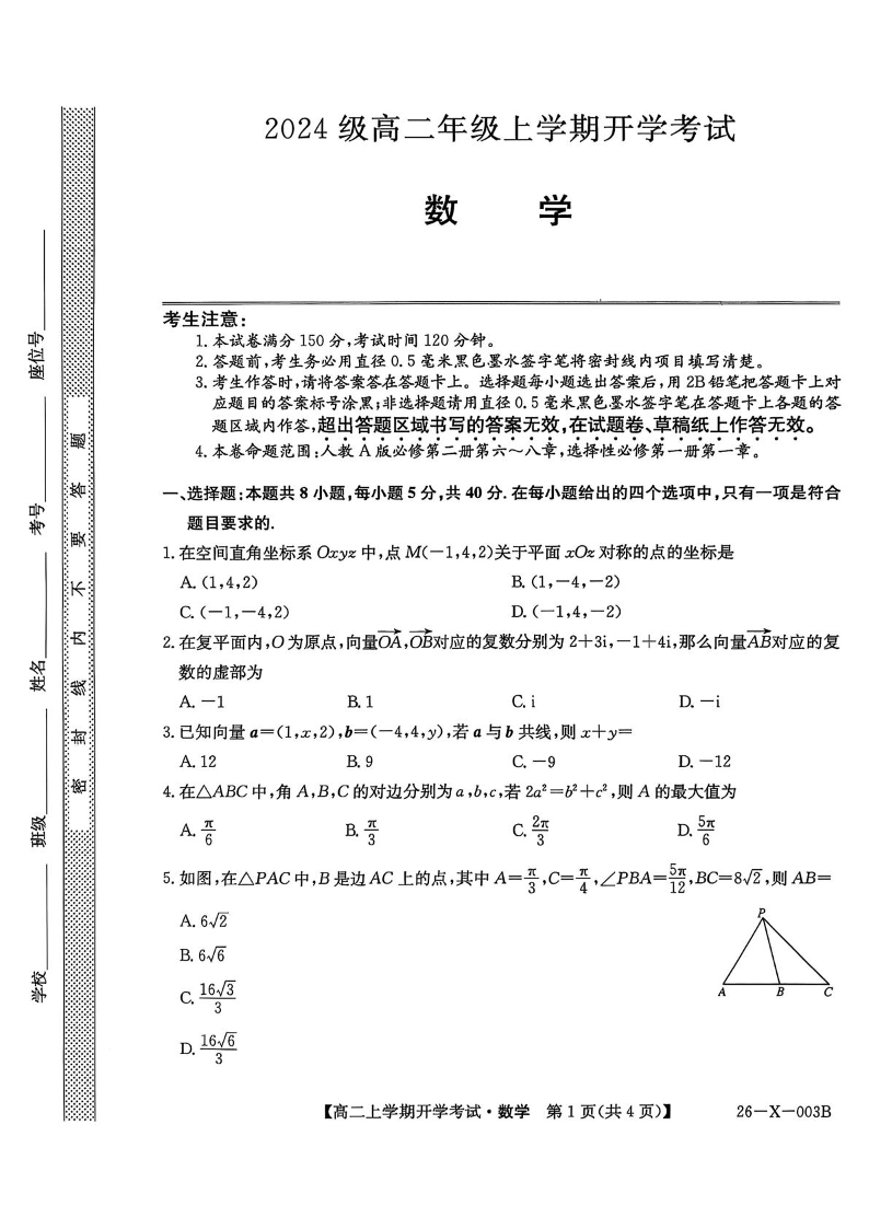 黑龙江省龙东联盟2025-2026学年高二上学期开学考试 数学试卷(含答案).pdf