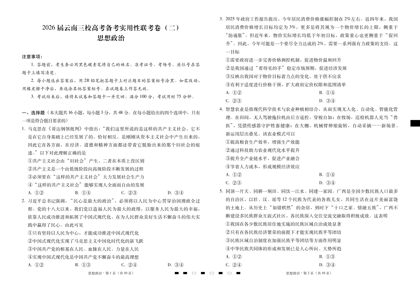 2026届云南三校高考备考实用性联考卷(二)思想政治.pdf