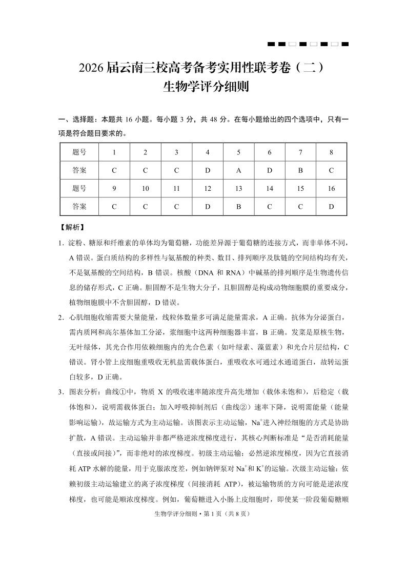 2026届云南三校高考备考实用性联考卷(二)生物-答案.pdf