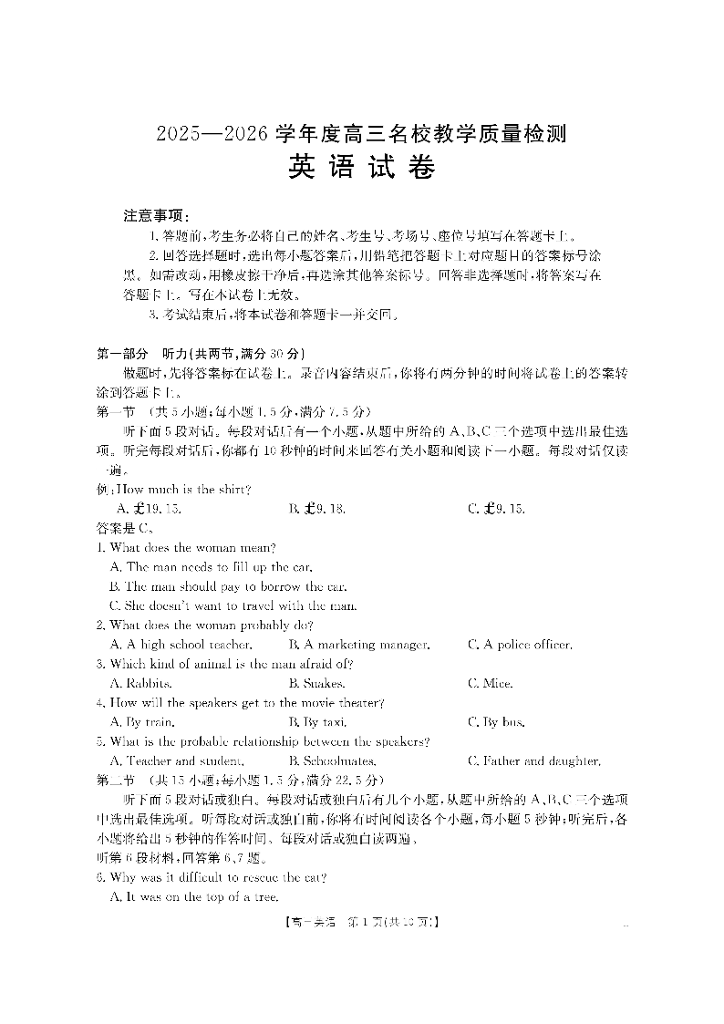 内蒙古2025-2026学年高三名校教学质量检测 英语.pdf
