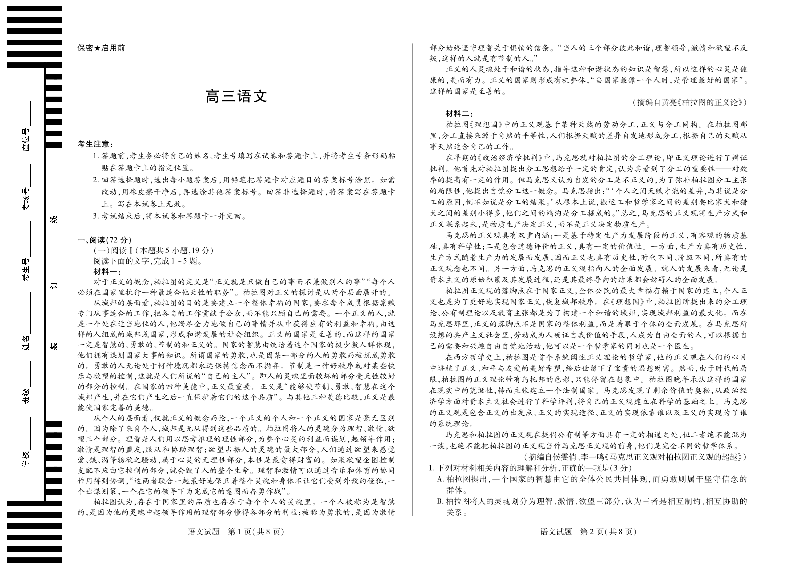 天一大联考·湖南省2026届高三年级上学期开学考 语文.pdf