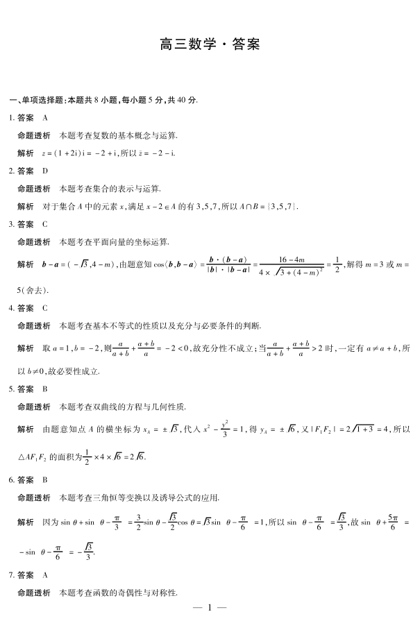 天一大联考·湖南省2026届高三年级上学期开学考 数学答案.pdf