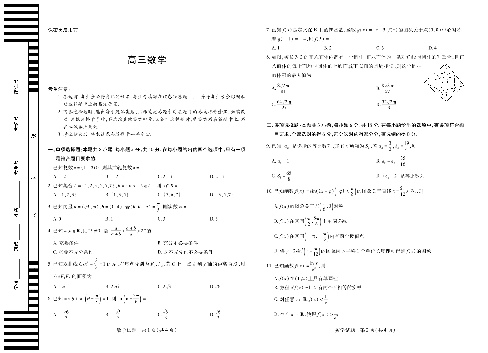 天一大联考·湖南省2026届高三年级上学期开学考 数学.pdf