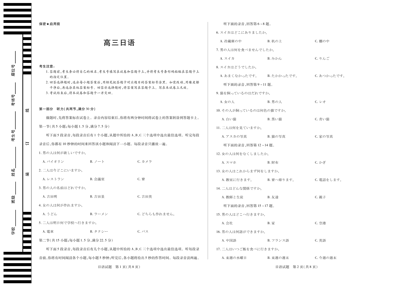 天一大联考·湖南省2026届高三年级上学期开学考 日语.pdf