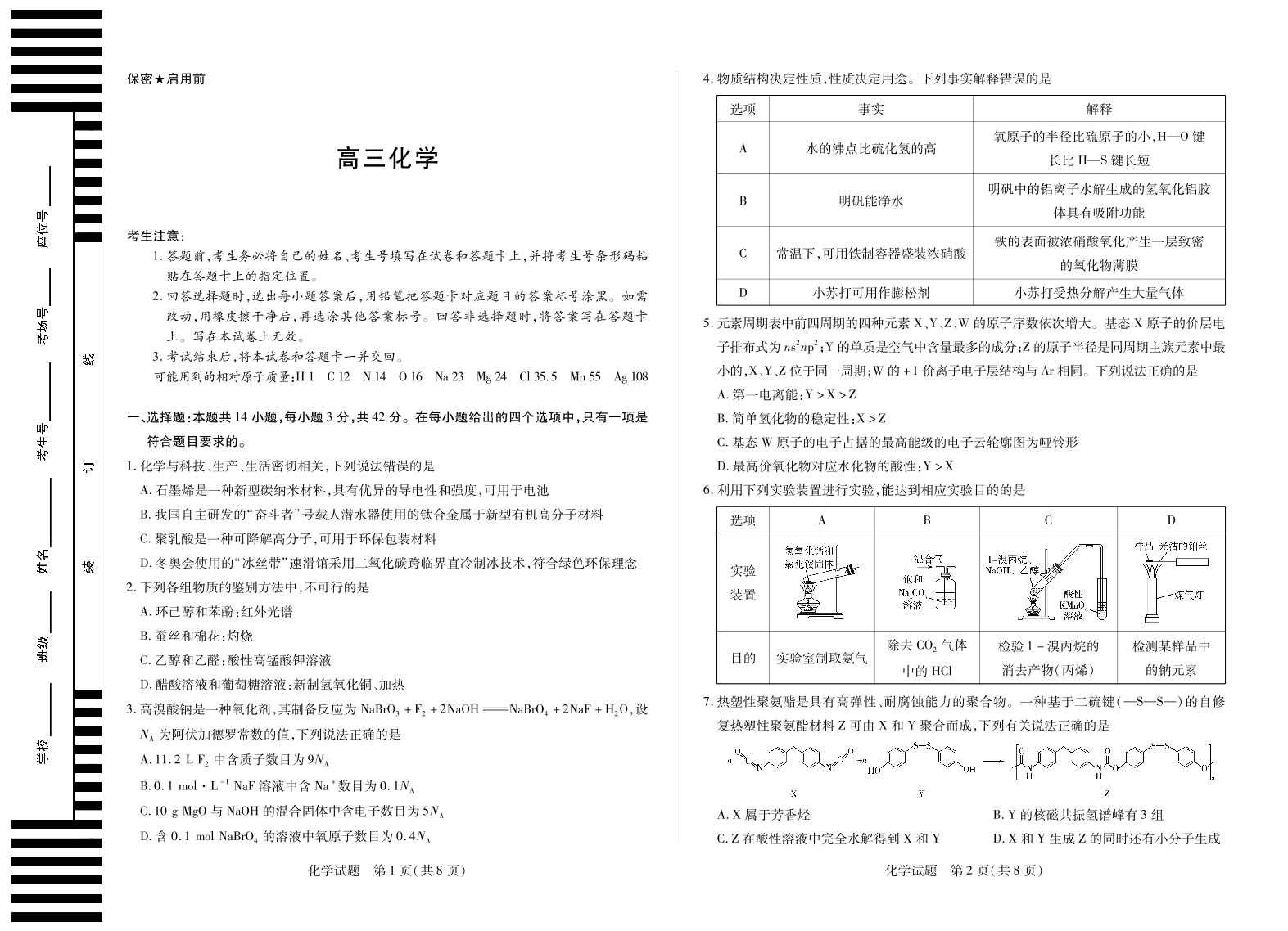 天一大联考·湖南省2026届高三年级上学期开学考 化学.pdf