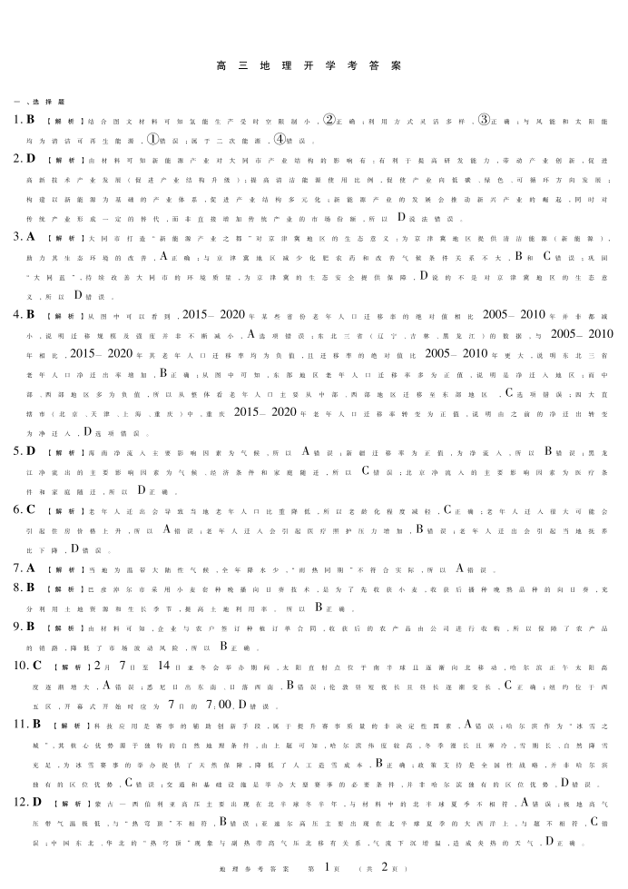 黑龙江省新时代高中教育联合体2026届高三上学期8月开学测试 地理答案.pdf