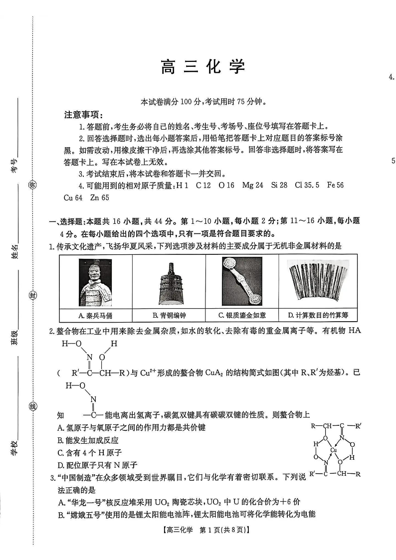 广东省2026届高三8月开学联考 化学.pdf