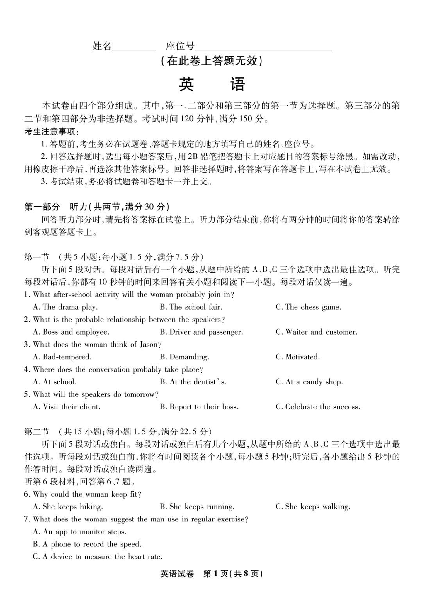安徽安庆一中2026届高三上学期8月开学考试 英语.pdf