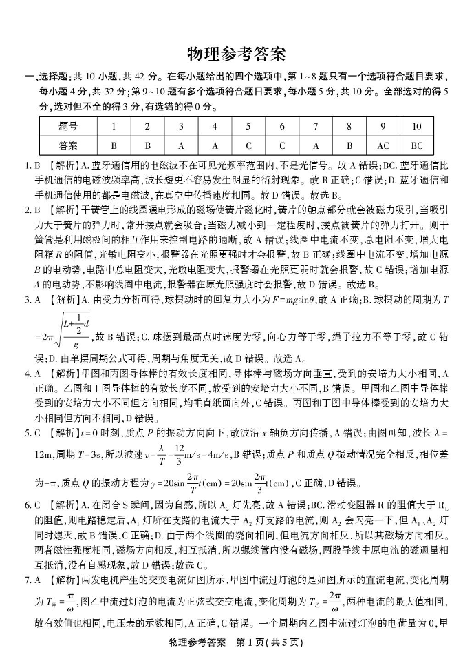 安徽安庆一中2026届高三上学期8月开学考试 物理答案.pdf