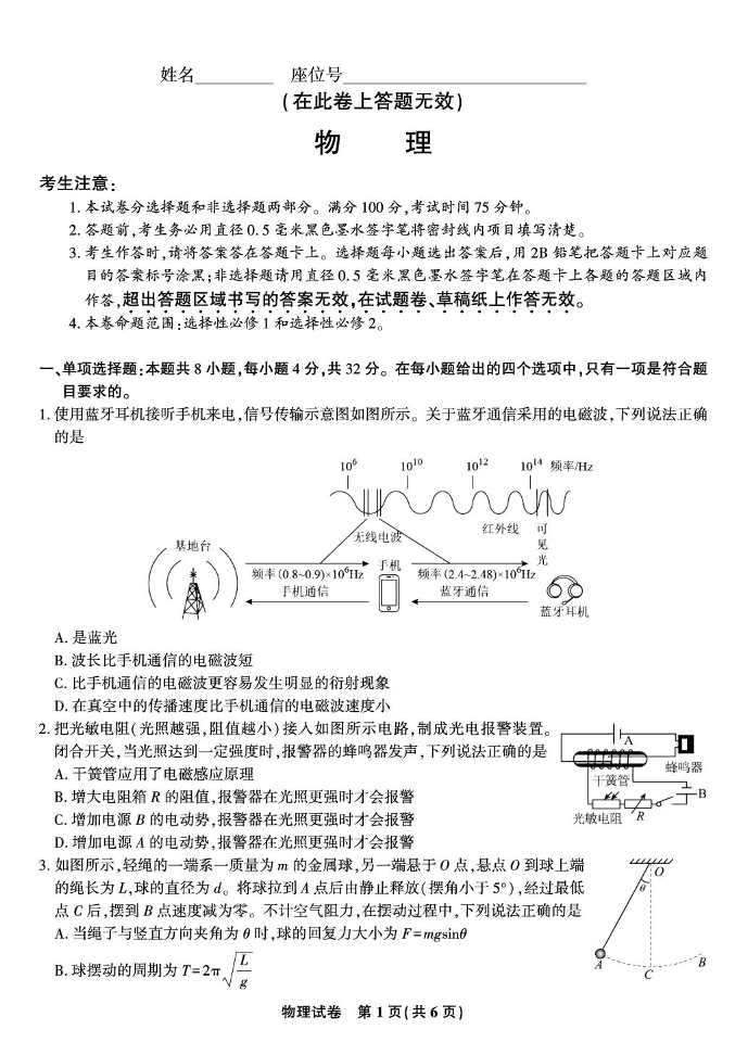 安徽安庆一中2026届高三上学期8月开学考试 物理.pdf
