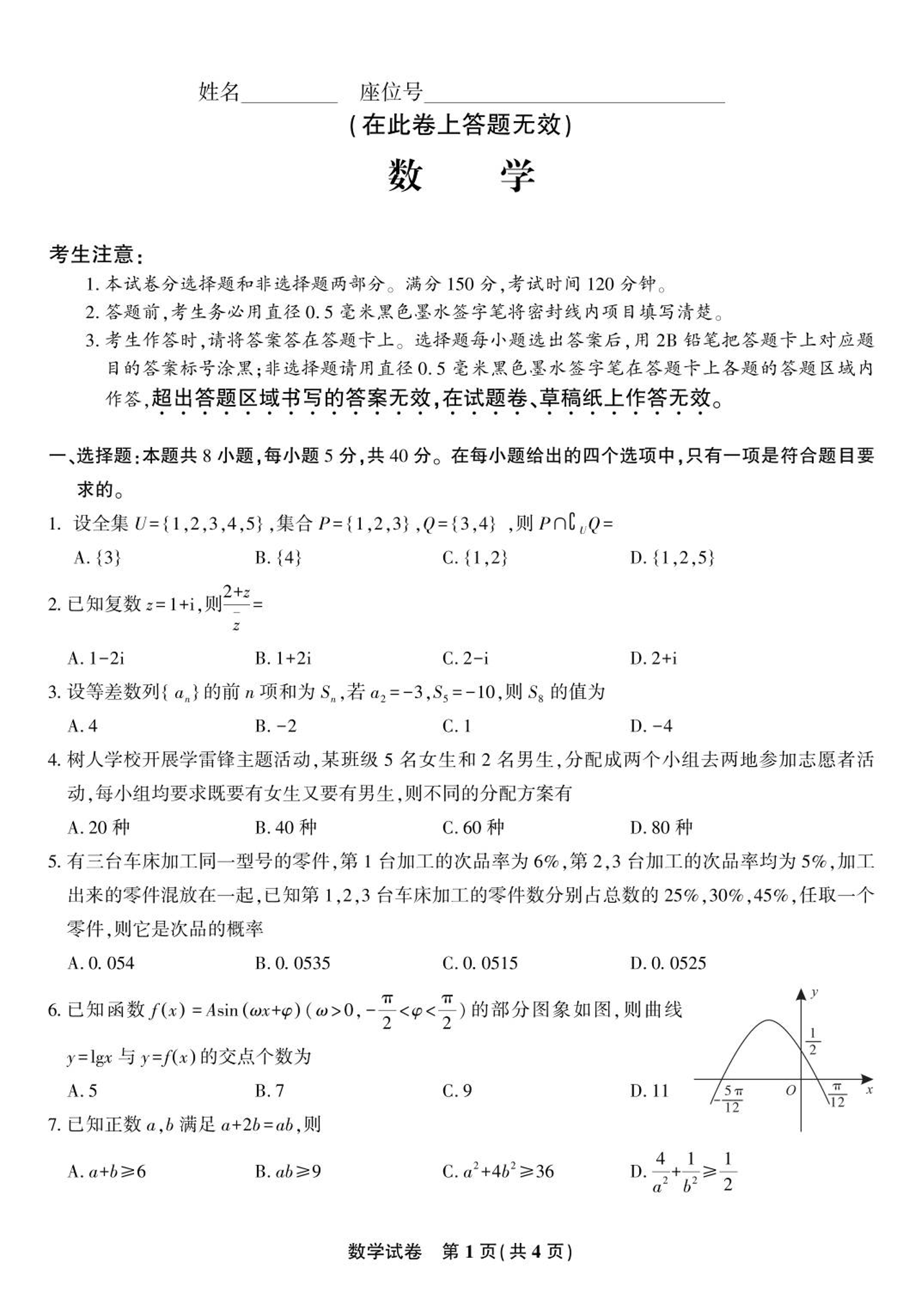 安徽安庆一中2026届高三上学期8月开学考试 数学.pdf