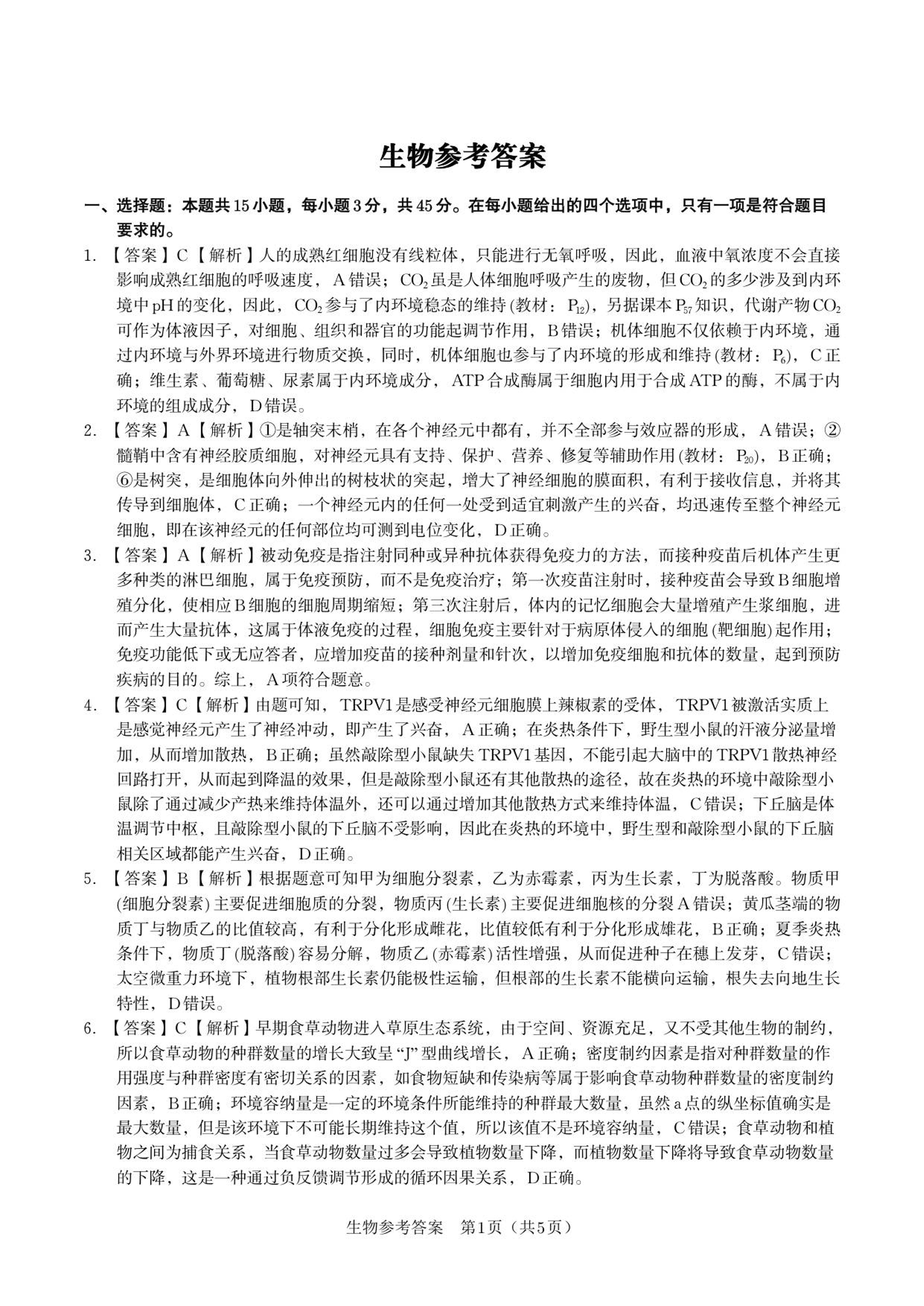 安徽安庆一中2026届高三上学期8月开学考试 生物答案.pdf