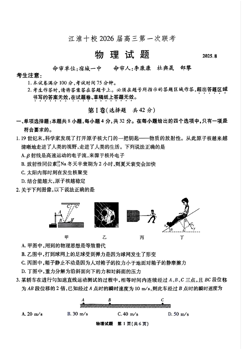 安徽省江淮十校2026届高三第一次联考 物理.pdf