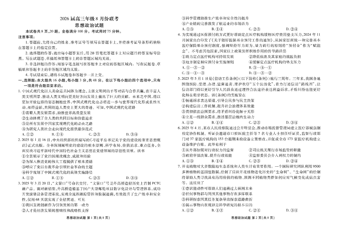 广东省衡水金卷2026届高三8月开学联考 政治.pdf