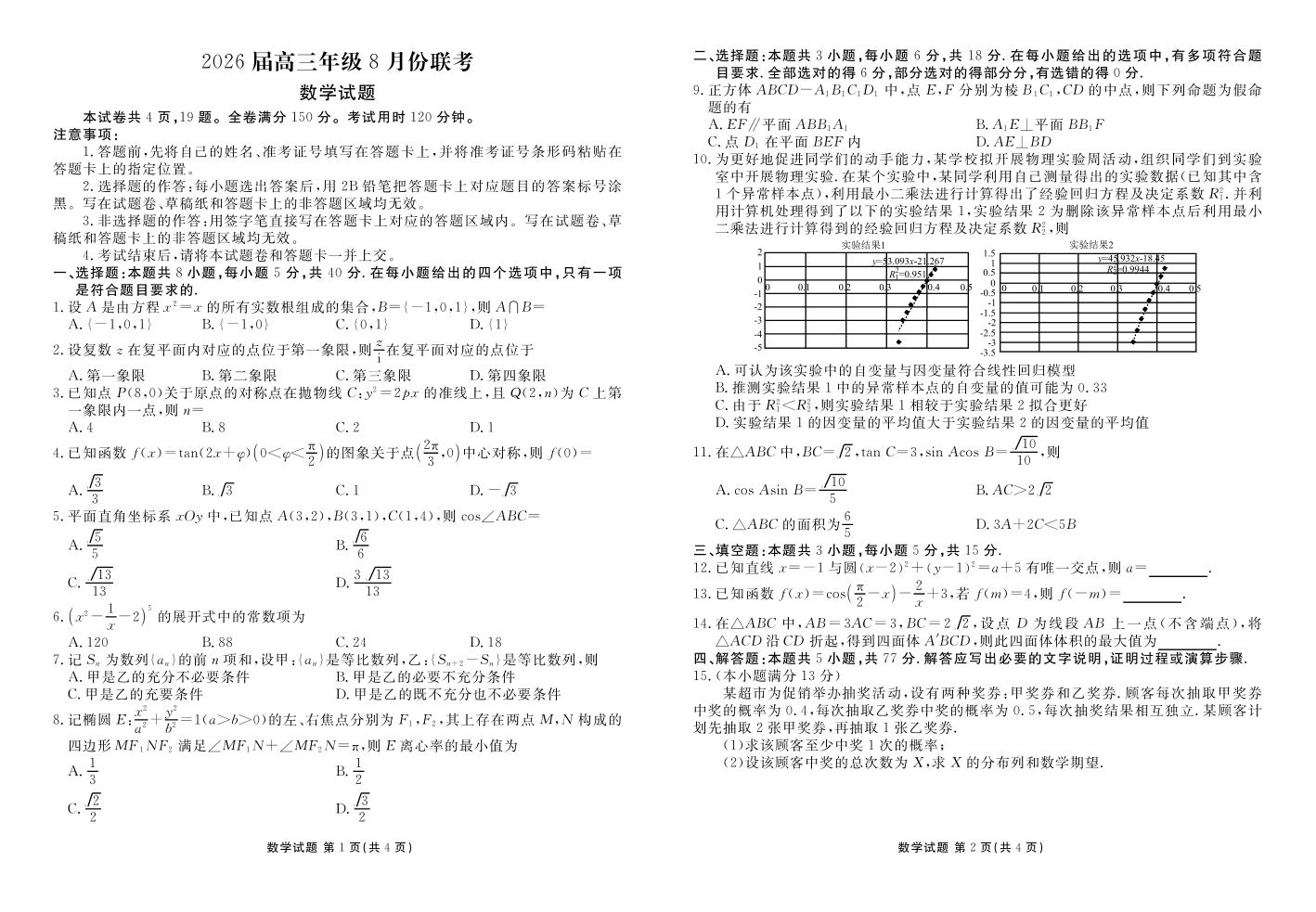 广东省衡水金卷2026届高三8月开学联考 数学.pdf