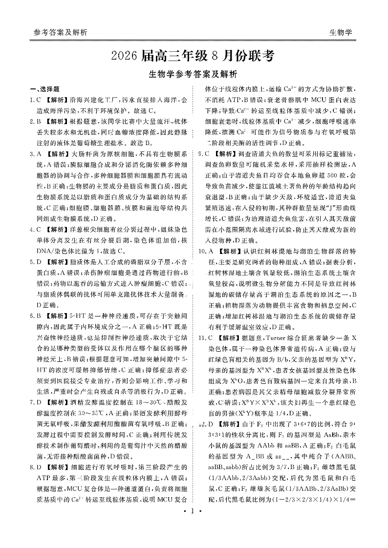 广东省衡水金卷2026届高三8月开学联考 生物答案.pdf