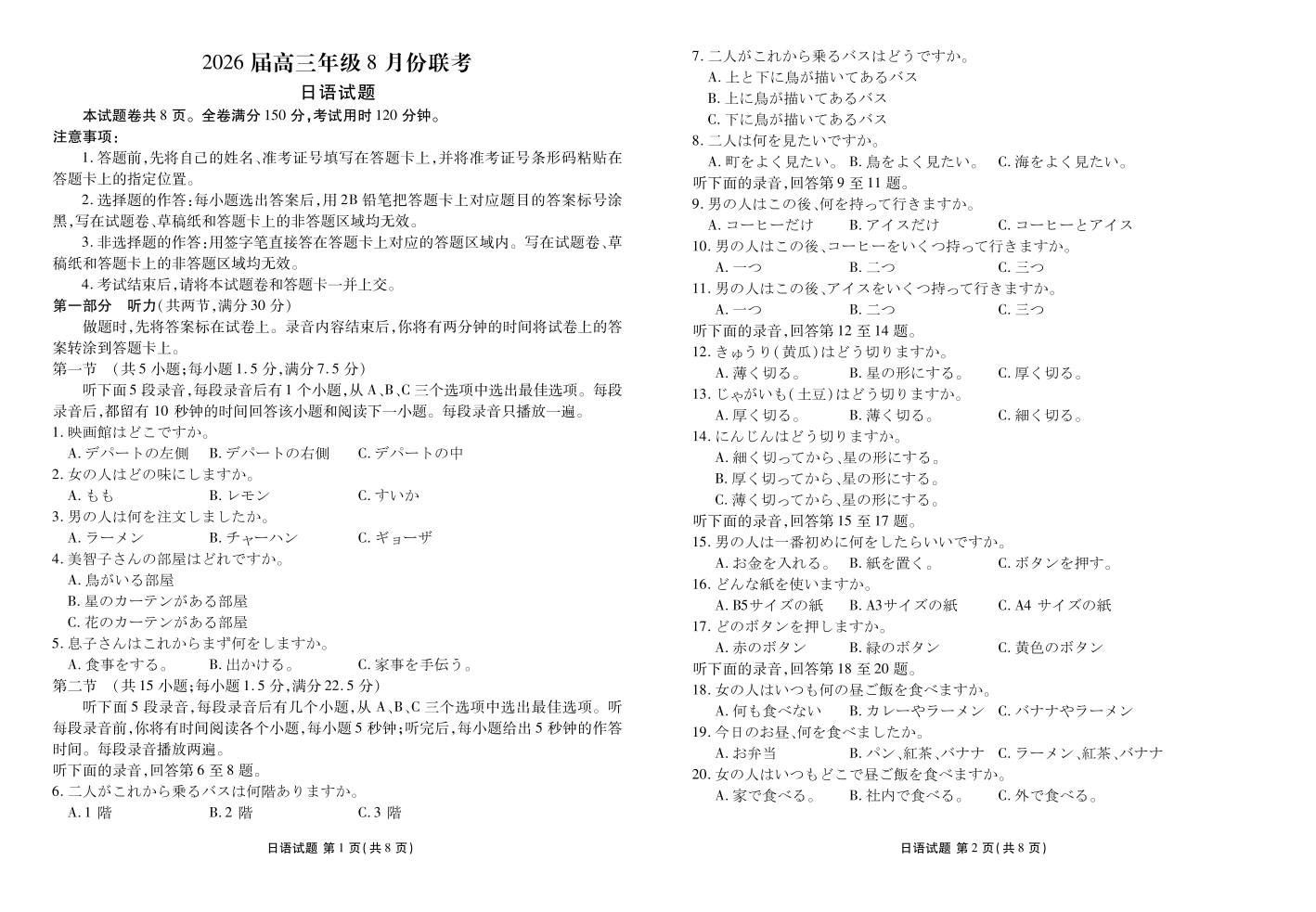 广东省衡水金卷2026届高三8月开学联考 日语.pdf