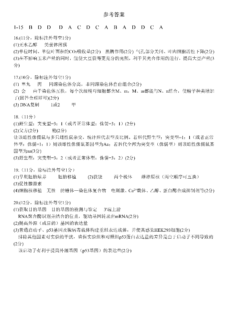 成都市第七中学2025-2026学年高三上学期8月入学考试 生物答案.pdf