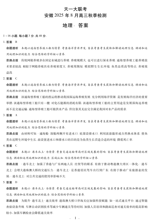 地理安徽高三8月秋季检测答案.pdf