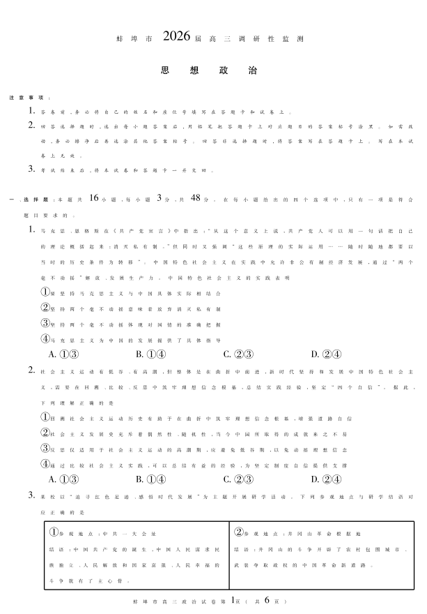 安徽省蚌埠市2025-2026学年高三上学期调研性监测 政治.pdf