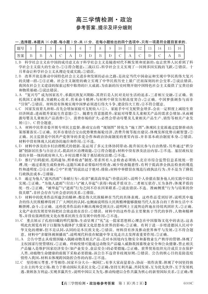 安徽省县中联盟2025-2026学年高三上学期学情检测 政治答案.pdf