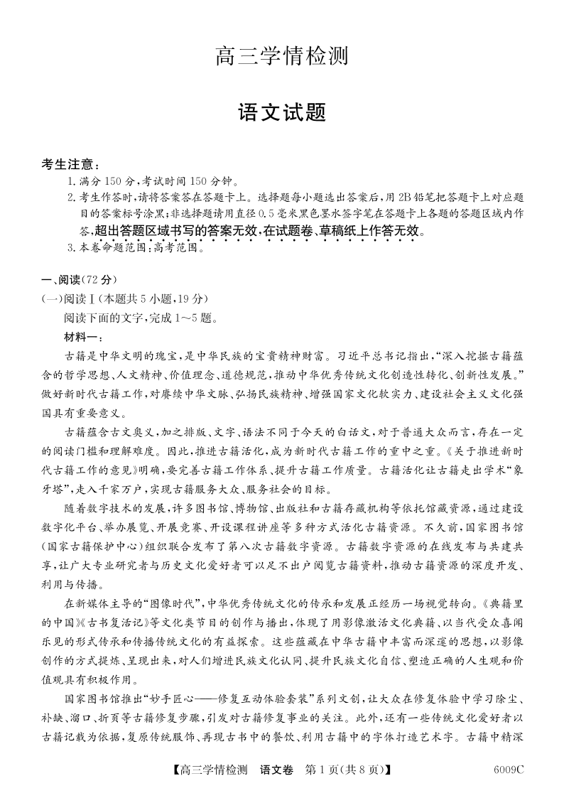 安徽省县中联盟2025-2026学年高三上学期学情检测 语文.pdf