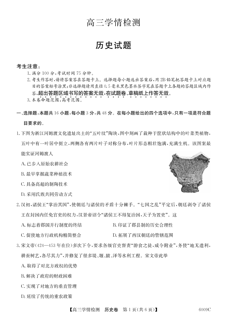 安徽省县中联盟2025-2026学年高三上学期学情检测 历史.pdf
