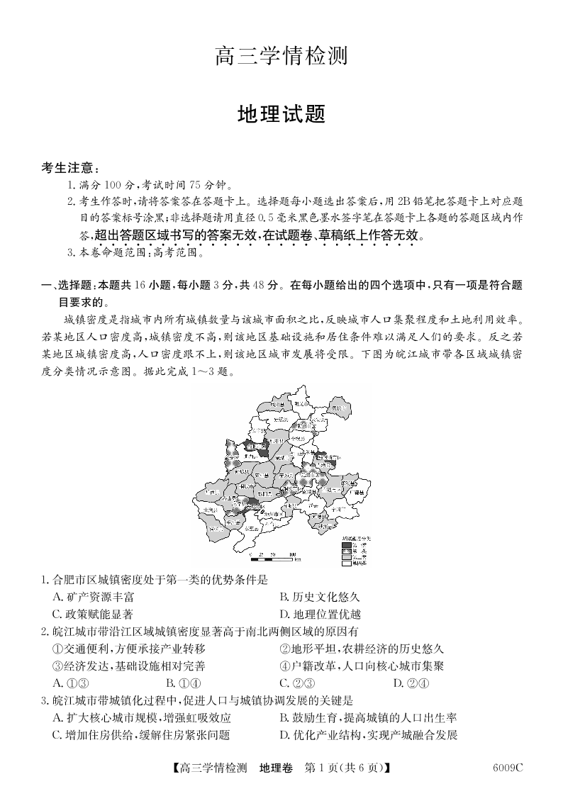 安徽省县中联盟2025-2026学年高三上学期学情检测 地理.pdf