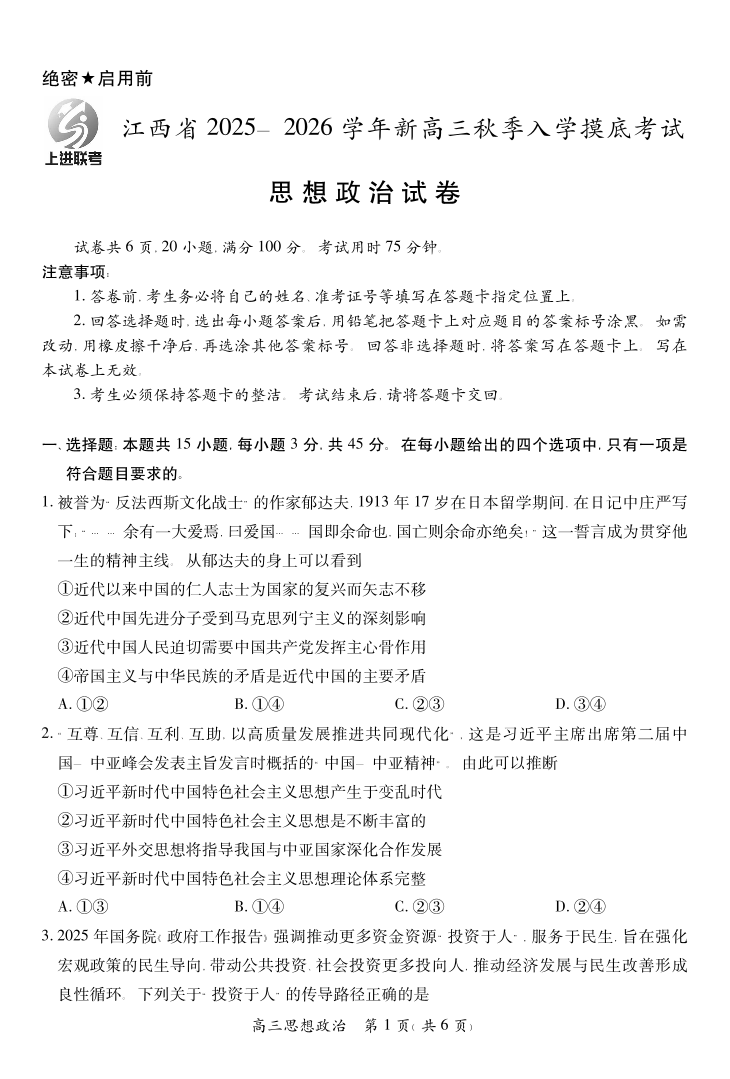 26届8月江西高三开学考试·政治.pdf