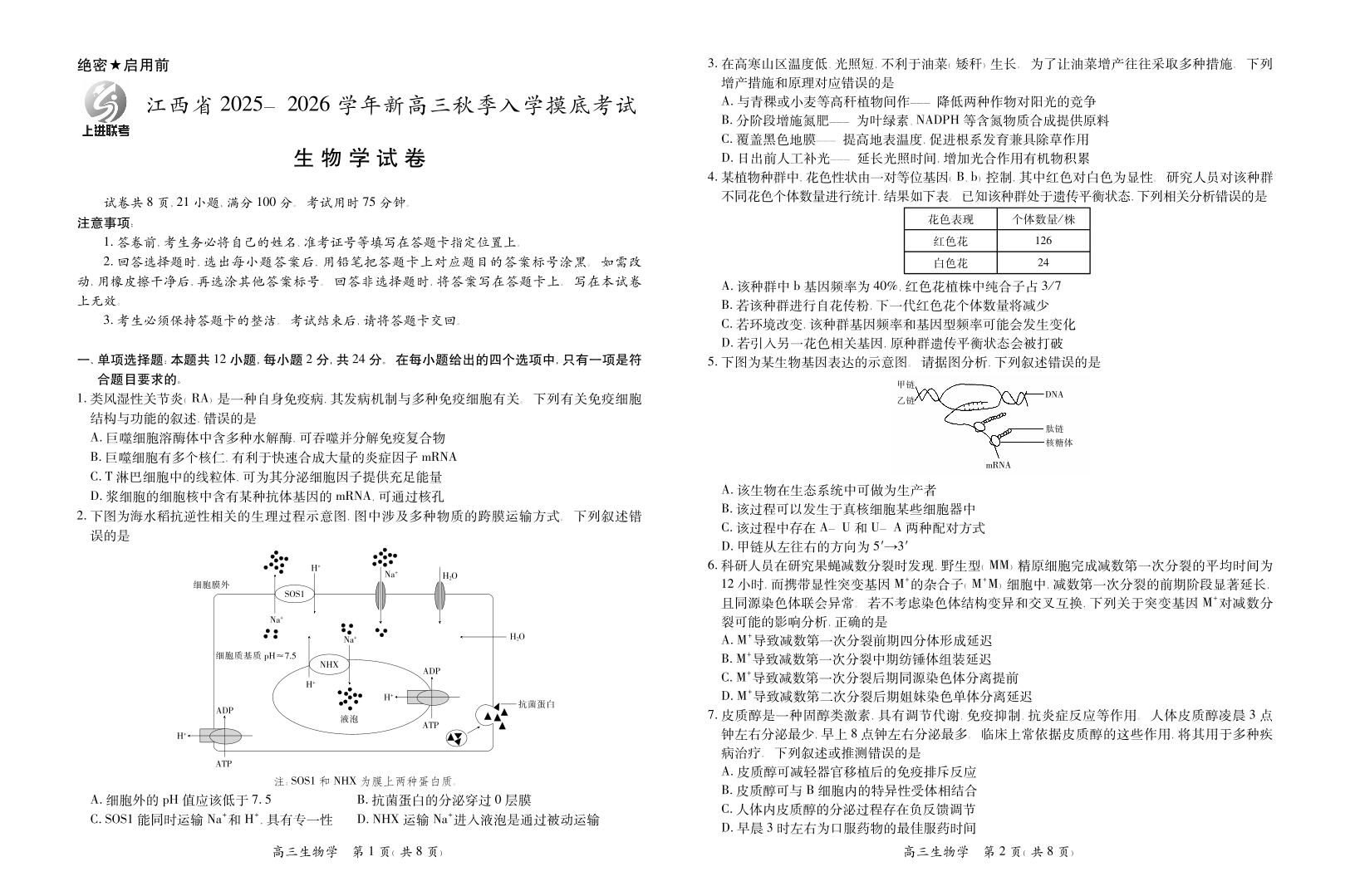 26届8月江西高三开学考试·生物.pdf