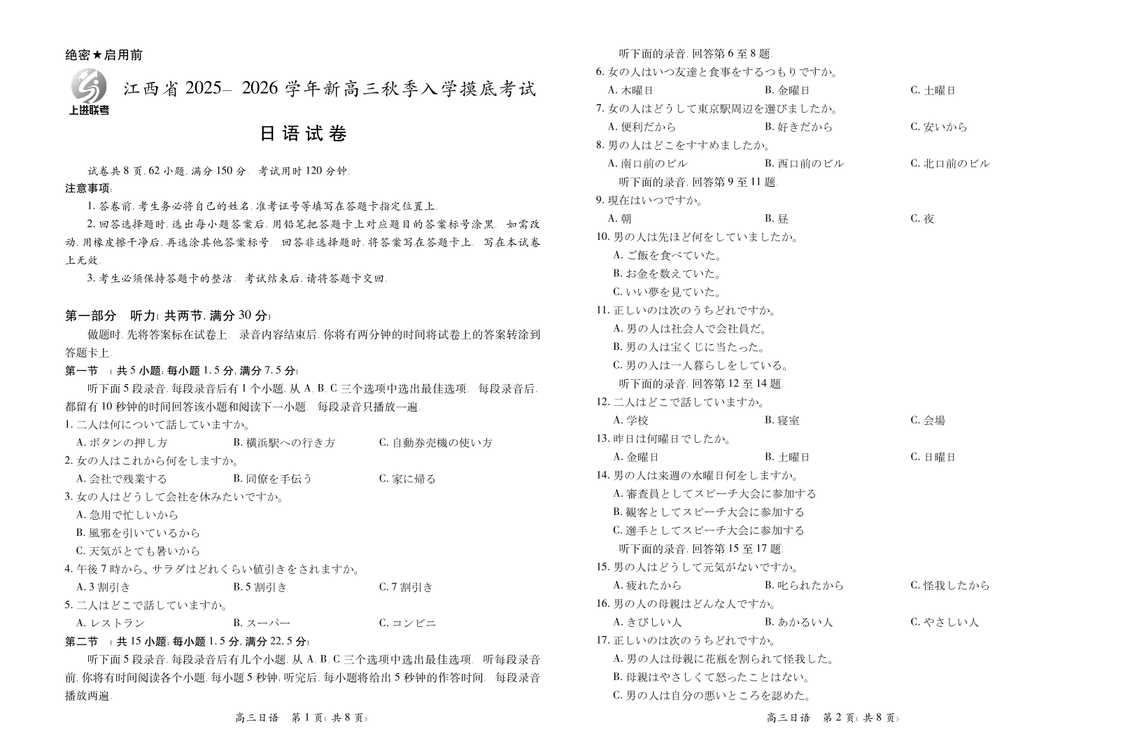 26届8月江西高三开学考试·日语.pdf