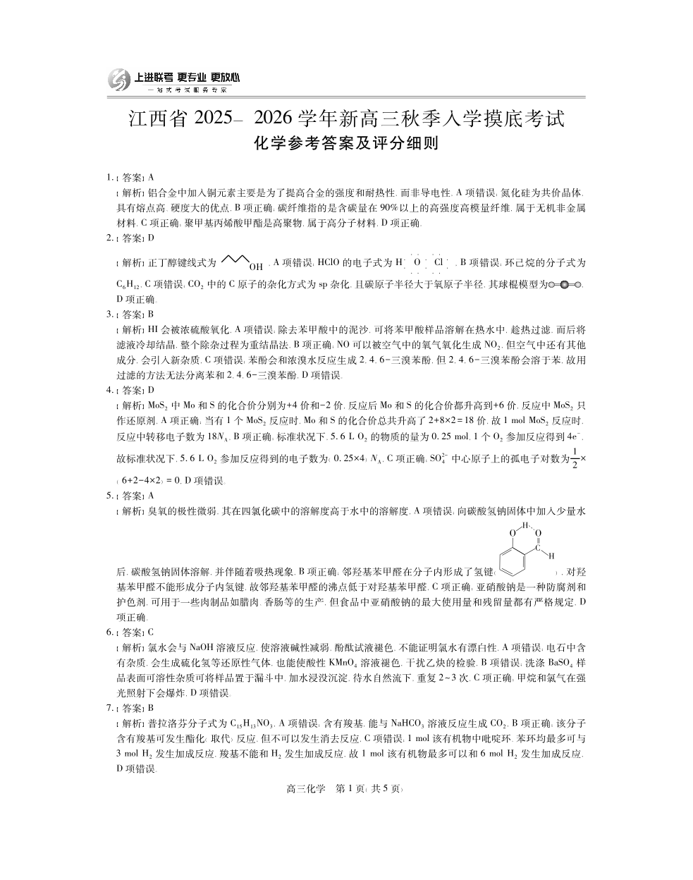 26届8月江西高三开学考试·化学答案.pdf