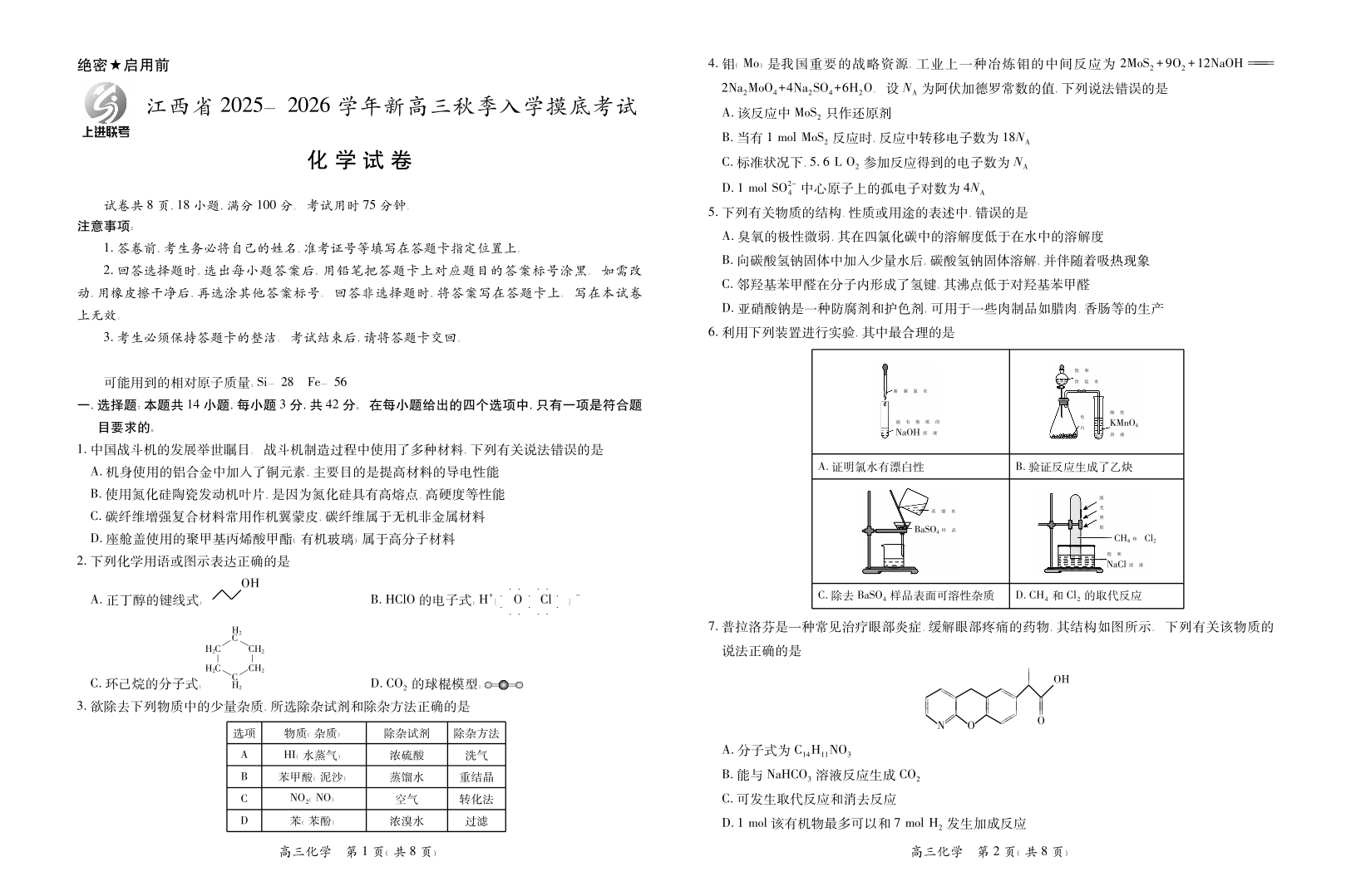 26届8月江西高三开学考试·化学.pdf