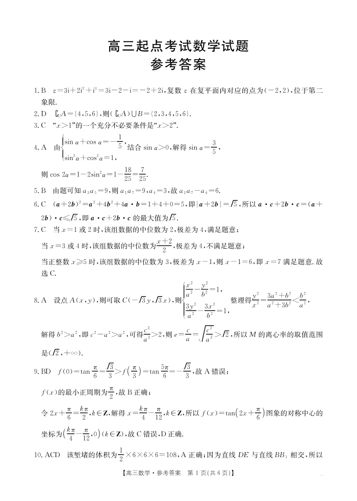 安徽省皖西南高中振兴发展联盟高三起点考试 数学答案.pdf